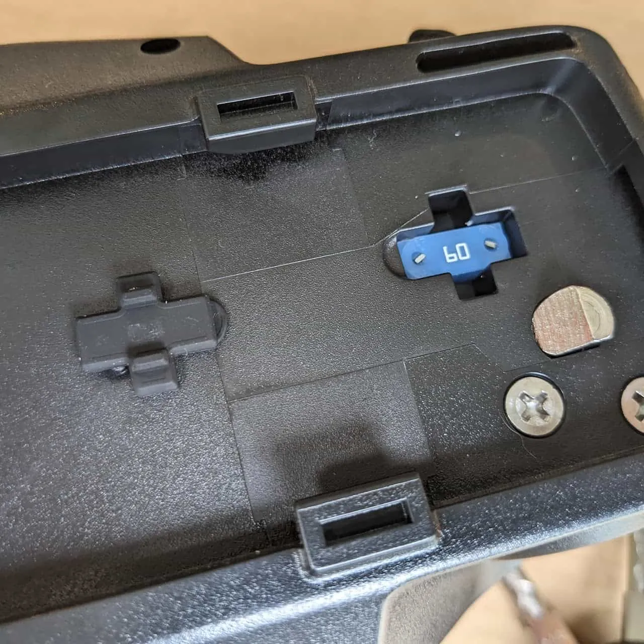 - 60 amp automotive fuse covered with a rubber cover