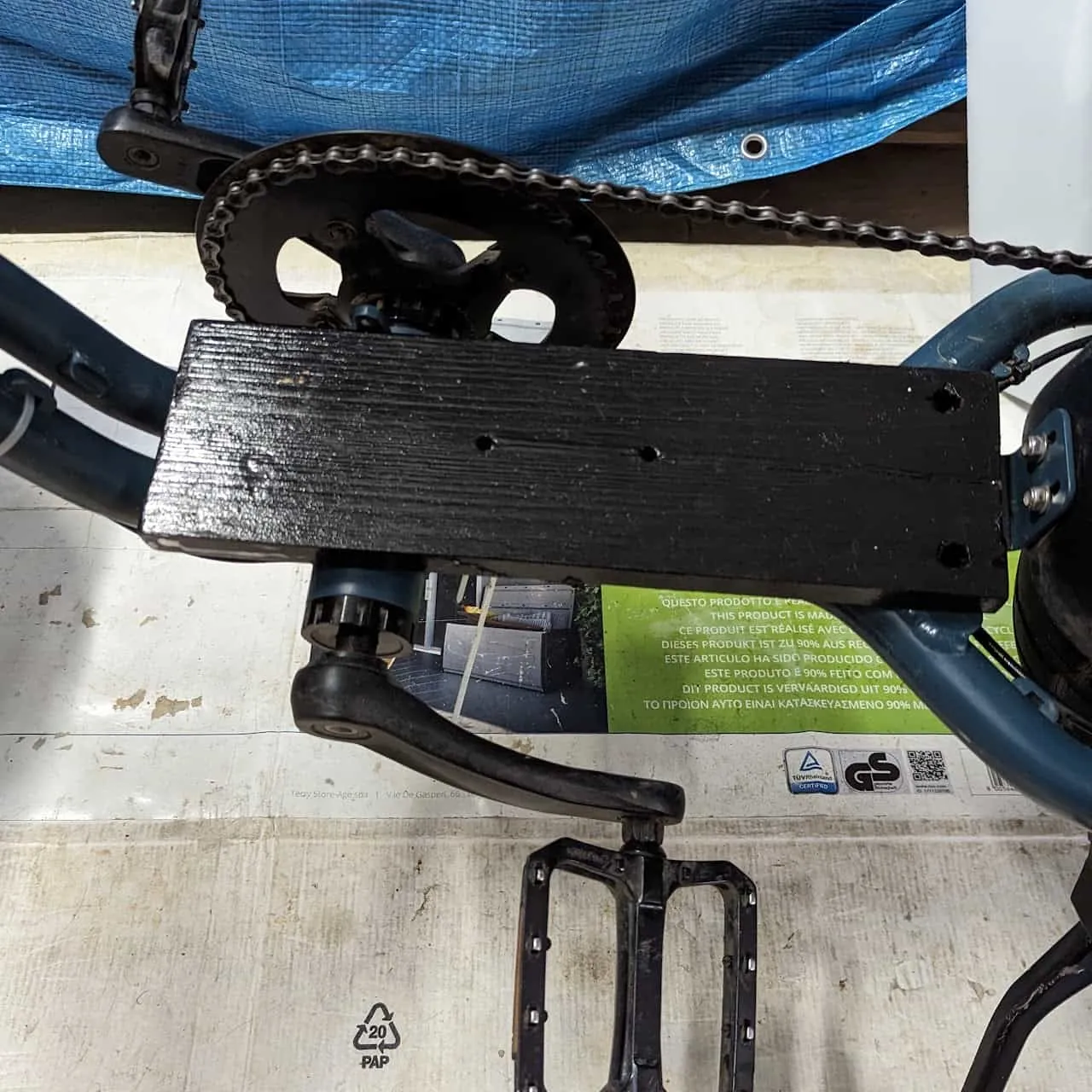 - Extra little plank. 10*31*1.7cm that fits on the pedal area and provides a flat surface for the assembly to sit on.