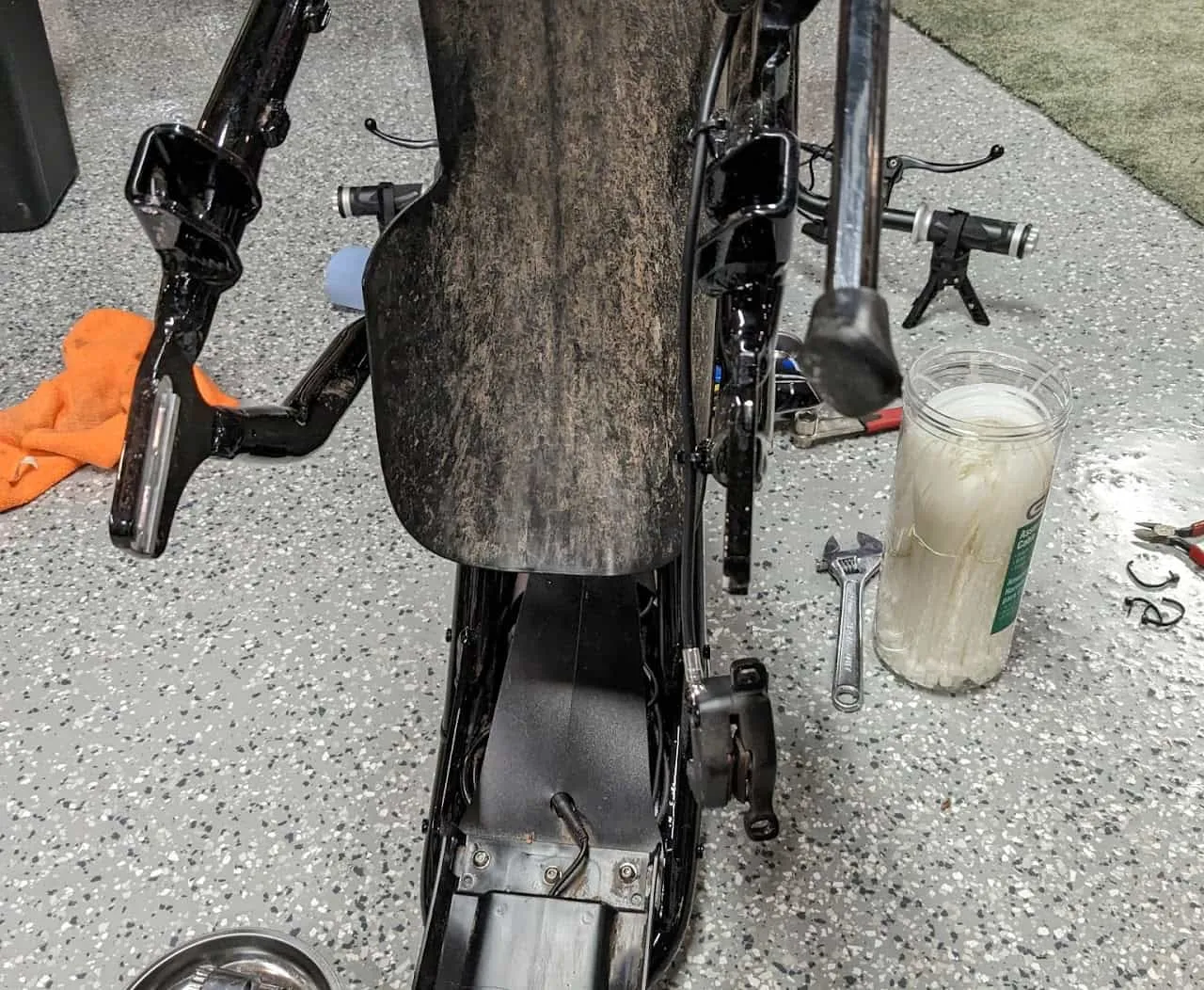 With a custom frame and weighing 84 pounds, the Super73 RX Mojave is, at best, awkward to work on. Logistically, there are more similarities to a motorcycle or dirt bike than to a bicycle.