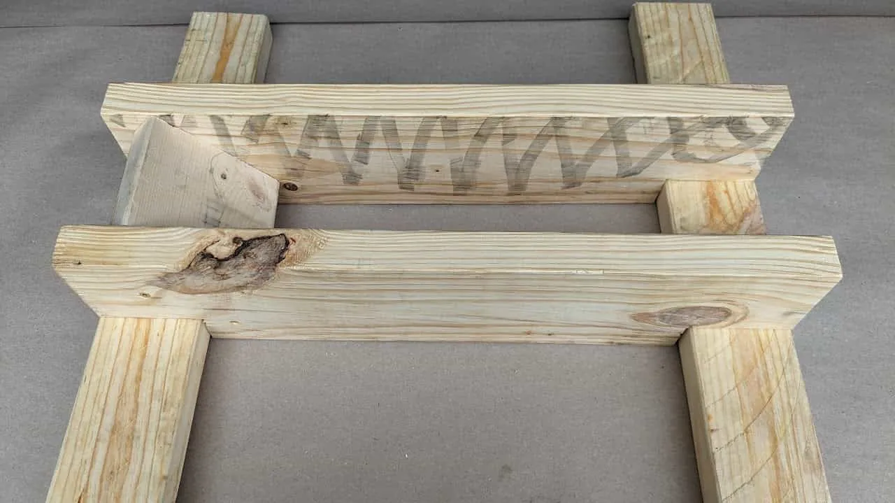 - I notched the 2x6 so the 2x4 cross-pieces could be flush with the bottom of the 2x6, providing a stable foundation.